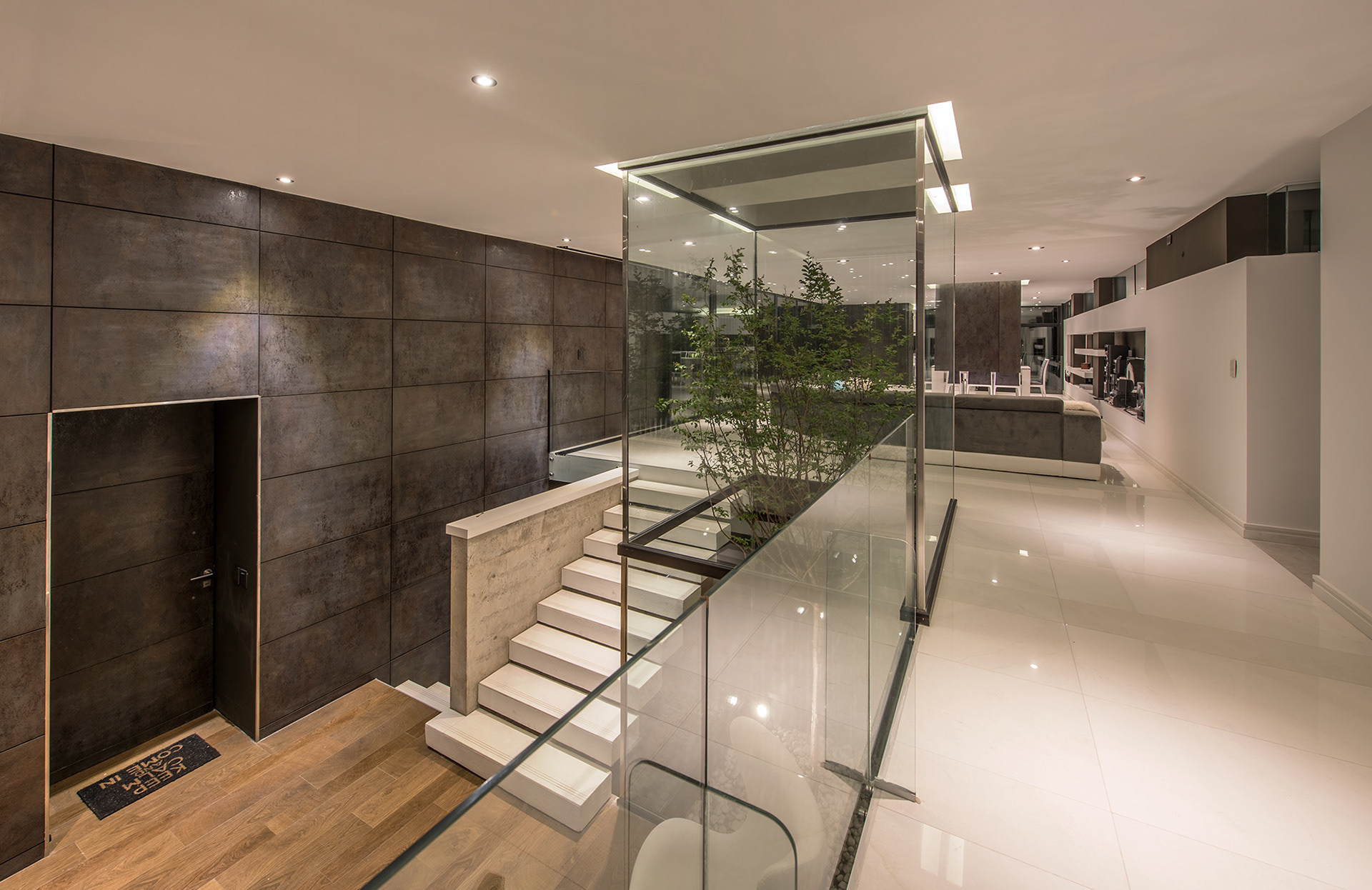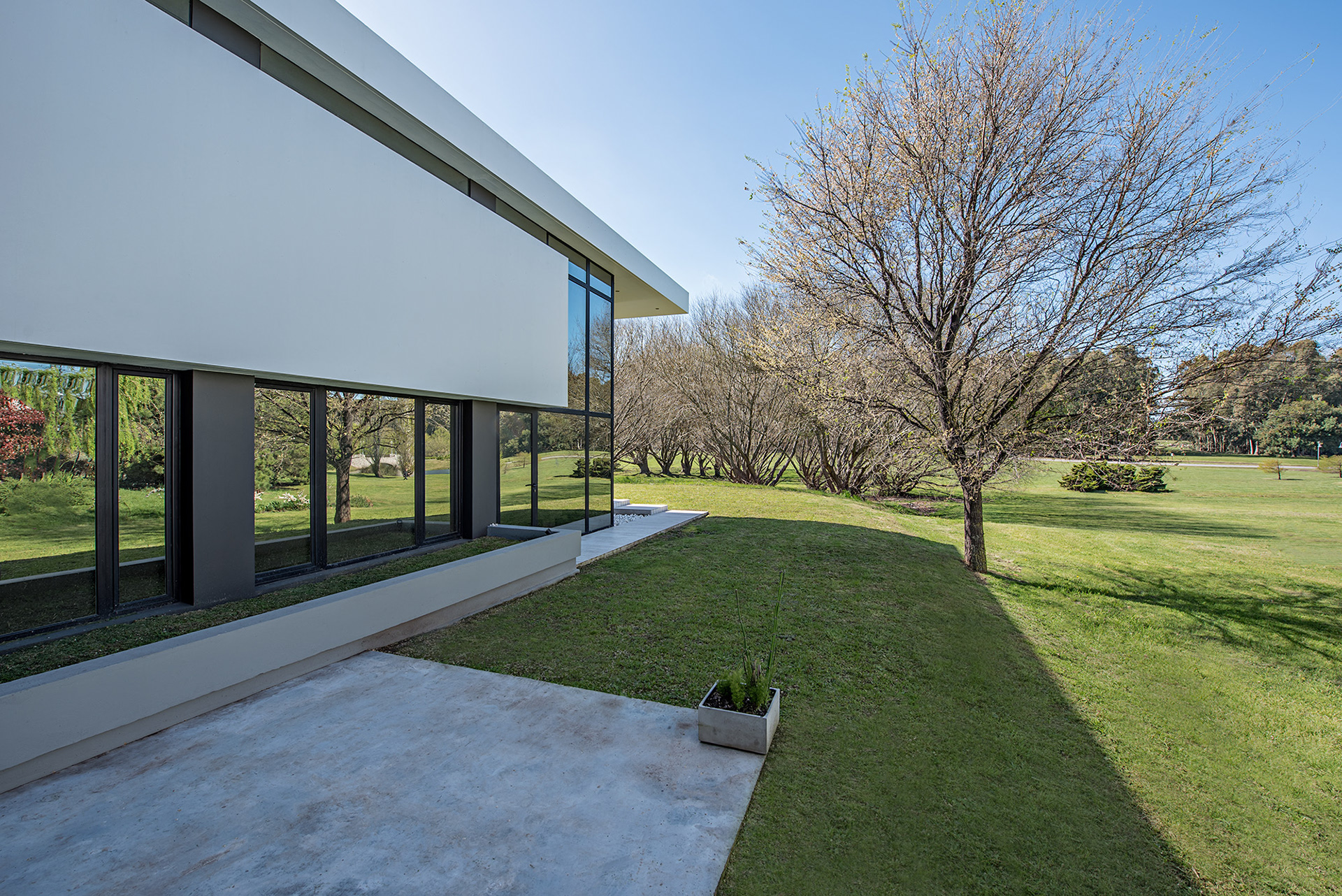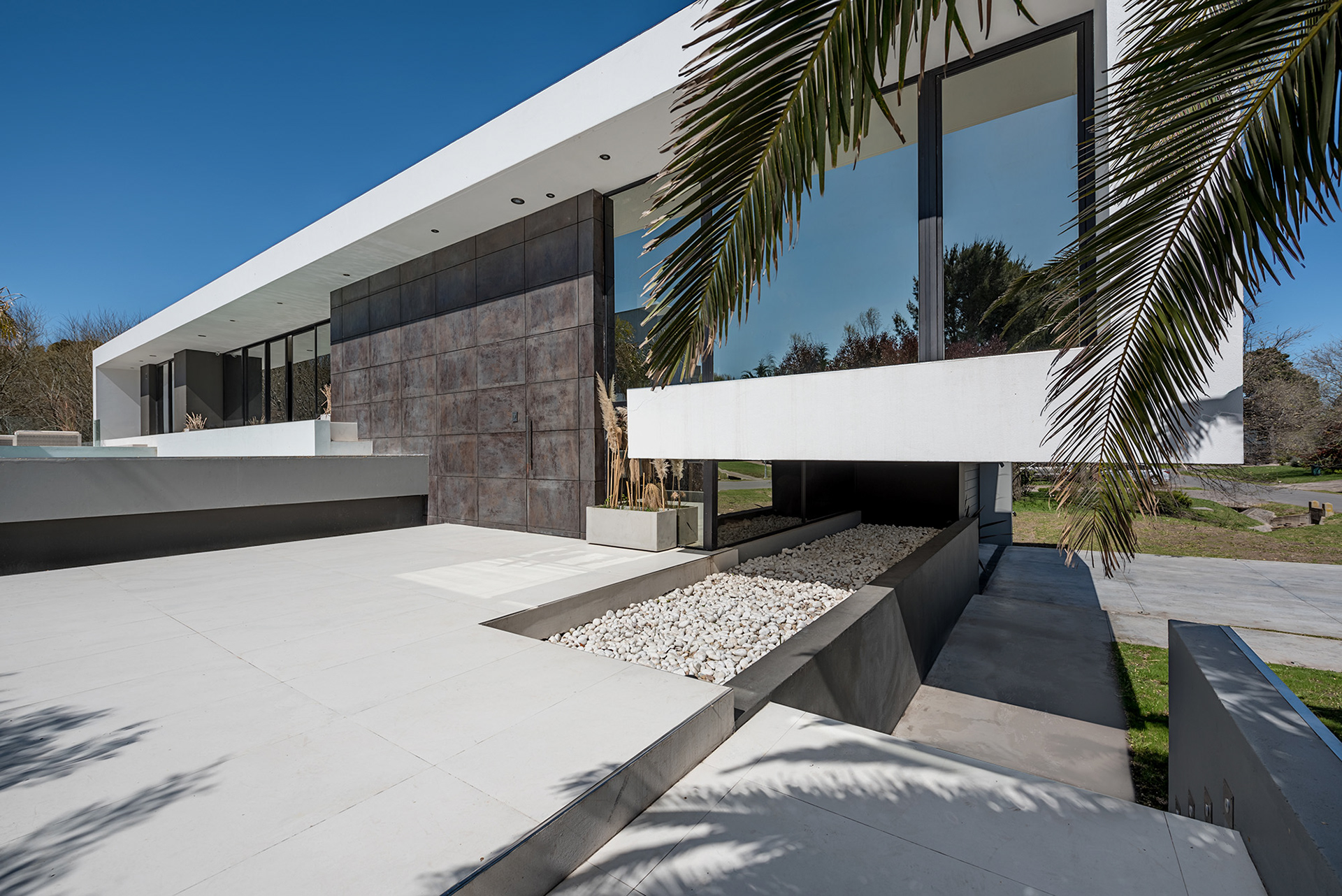 Vivienda proyectada por LINEHOUSE ARQUITECTURA de 600 m2, en un terreno con pendiente, muy cercana a un arroyo.