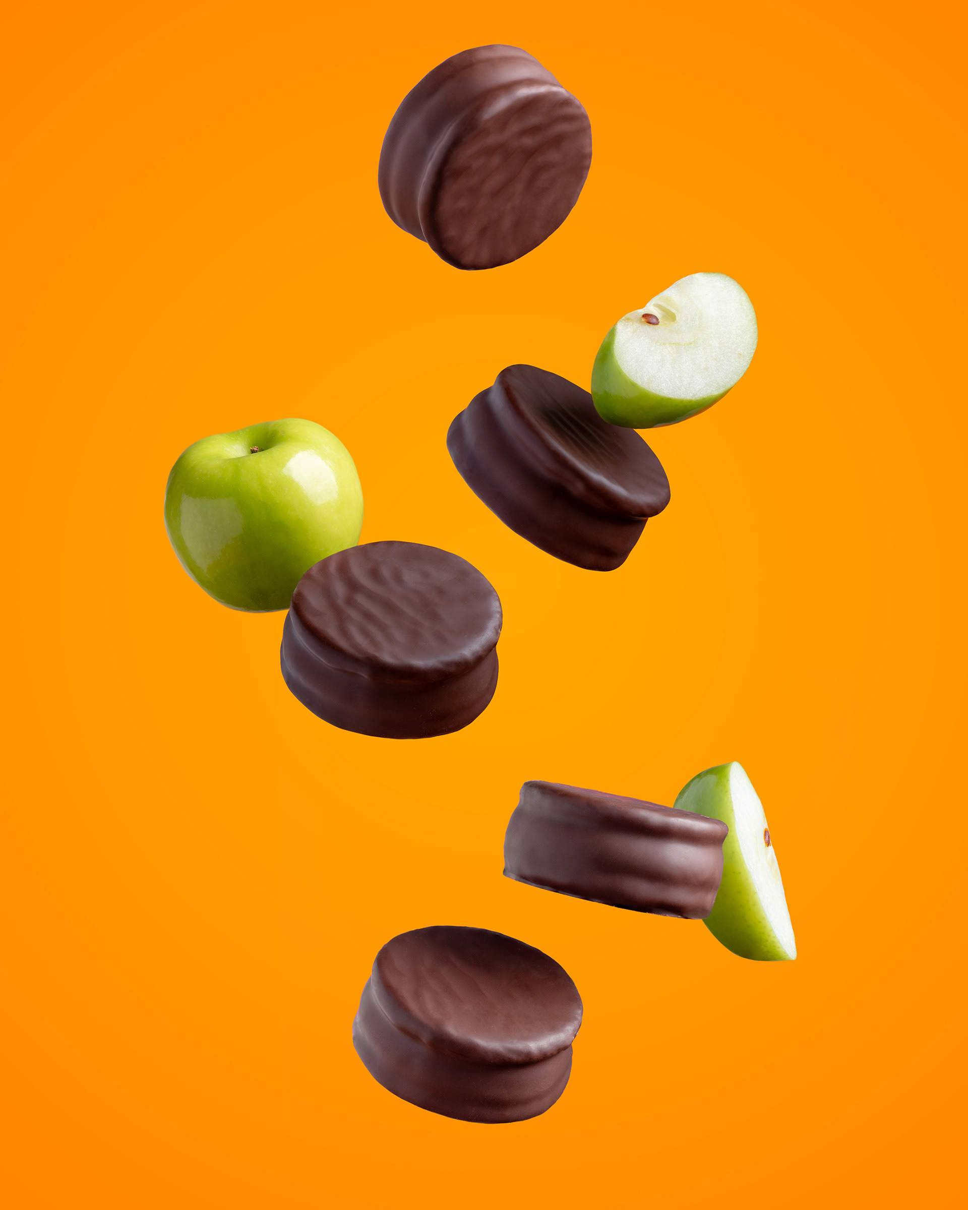 Para Guolis, realizamos una sesión de fotografía creativa de alfajores que destaca su calidad y frescura. Nuestro enfoque se centró en la dirección de arte, creando una composición visual dinámica que presenta los alfajores y las fresas en un concepto de movimiento suspendido. El food styling fue clave para potenciar la frescura y el sabor del producto, seleccionando cuidadosamente los elementos y las combinaciones de colores para reforzar la identidad de la marca. A través de la fotografía, logramos captar la esencia artesanal de los alfajores, resaltando cada detalle para que la experiencia visual refleje la calidad de Guolis.
