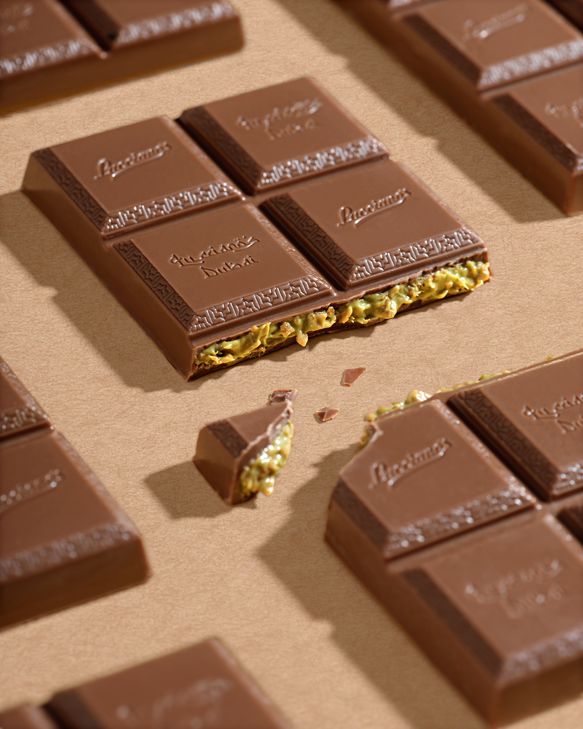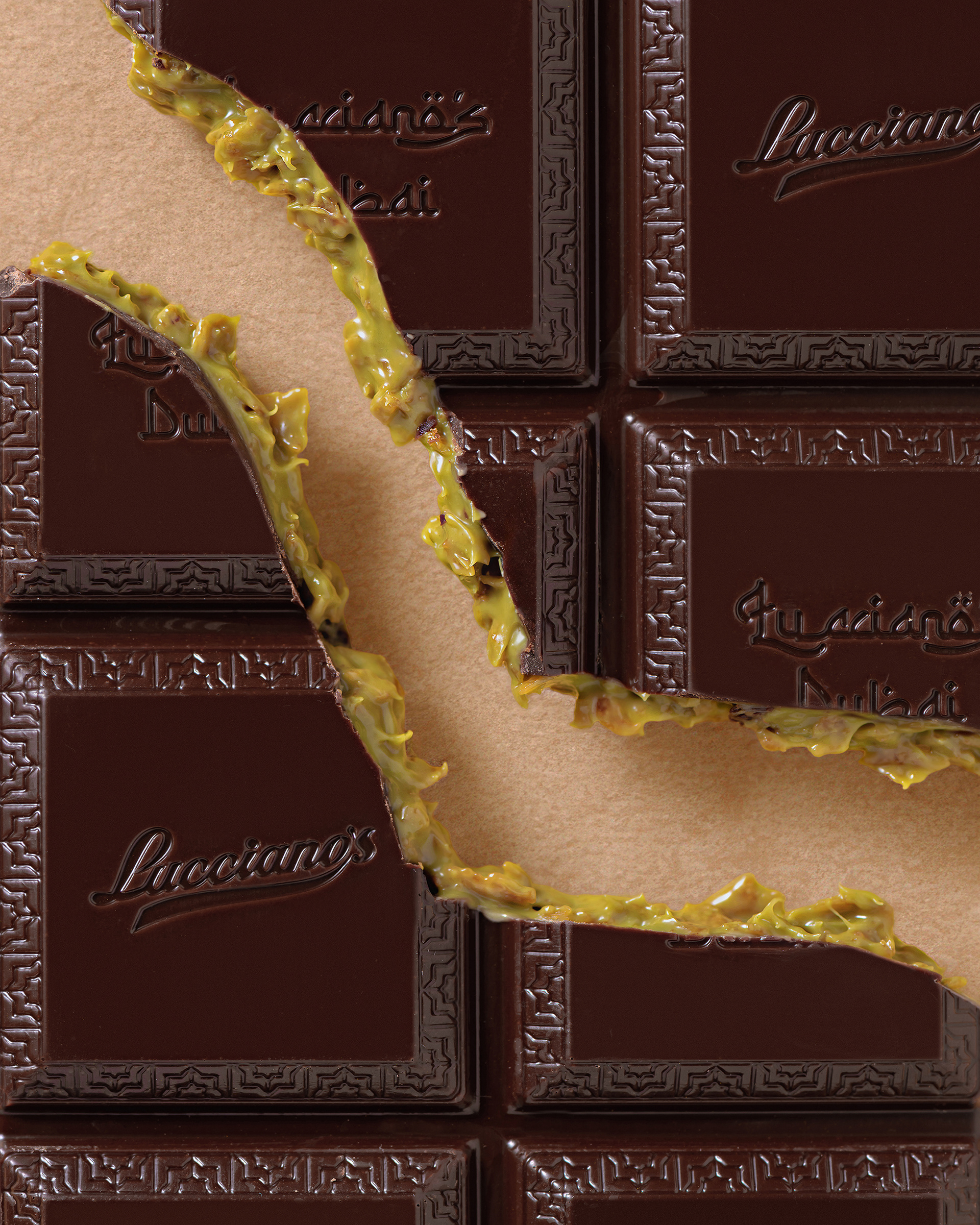 Producción fotográfica para el lanzamiento de las nuevas tabletas de chocolate Dubai de Lucciano’s. El trabajo visual se centró en elevar el posicionamiento premium del producto, capturando la sofisticación de sus texturas y el detalle de su relleno. Con el food styling de Maru Vetere, desarrollamos una propuesta de imagen de alta calidad que destaca la exclusividad de esta línea y su impacto visual en el segmento de chocolates de autor.