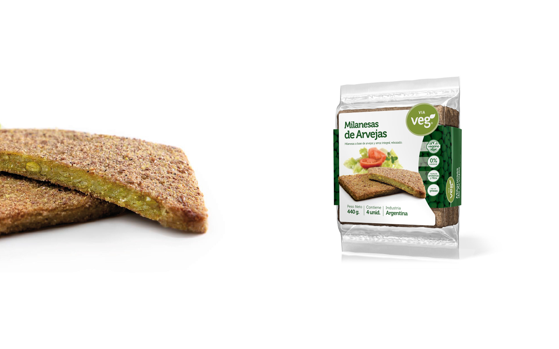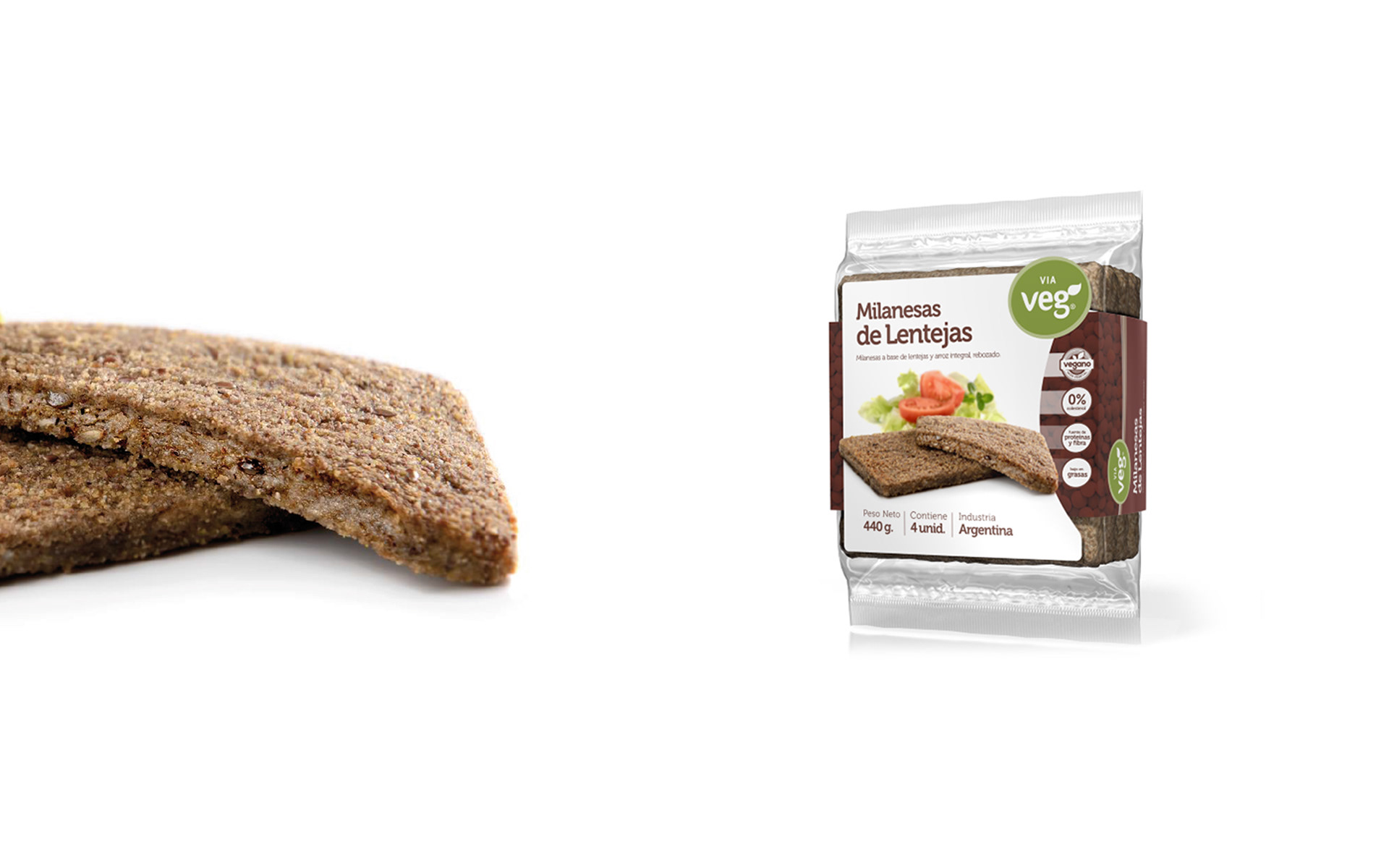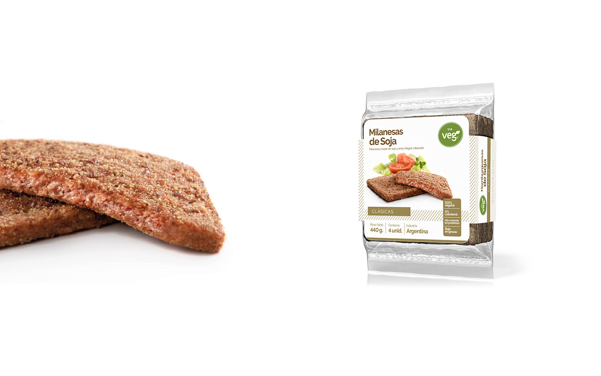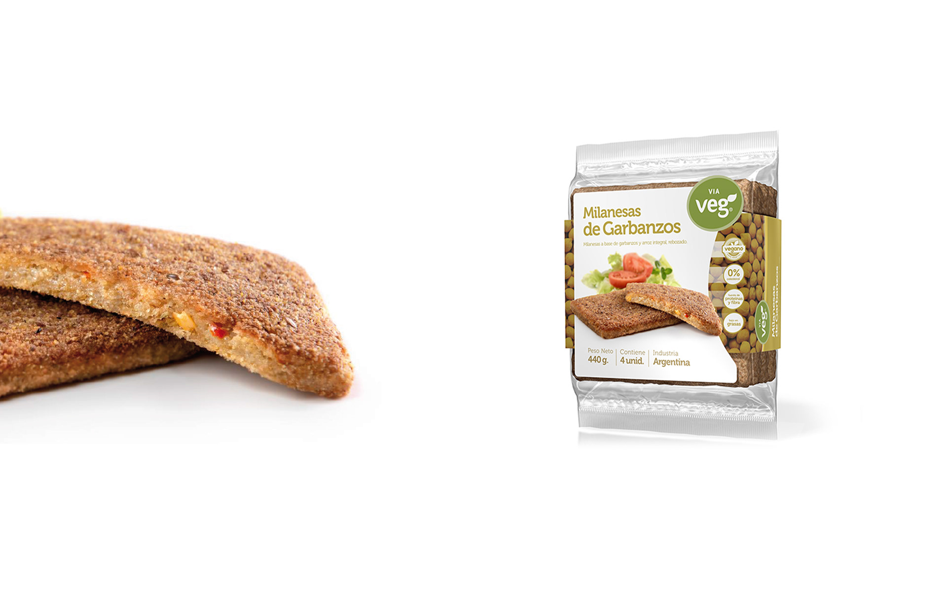 Fotografía de packaging para los envases de las milanesas y hamburguesas vegetarianas Via Veg, producidas en Santa Clara del Mar y distribuidas en Mar del Plata y toda la provincia de Buenos Aires. Fotos realizadas por Sebastián Vecchi.
